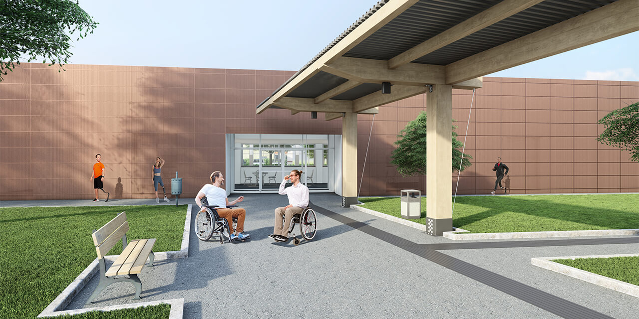 Il progetto riguarda la ristrutturazione della struttura sanitaria di Villanova d’Arda realizzando un’area residenziale da circa 50 posti letto e mantenendo un’area per le attività riabilitative e sanitarie. Viene poi rafforzata la parte degli impianti sportivi attraverso il mantenimento degli edifici esistenti (palestre, palazzetto, piscine riabilitative) e la costruzione di una piscina, una pista di atletica e spazi per i paratleti.