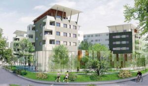 Il progetto riguarda la realizzazione di un immobile ad uso prevalentemente residenziale con attività commerciali al piano terra e due piani interrati a destinazione parcheggio in via Monte Taddeo ad Almè. L’intervento fa parte di un più ampio progetto di riqualificazione ambientale, urbanistica e architettonica dell’area.