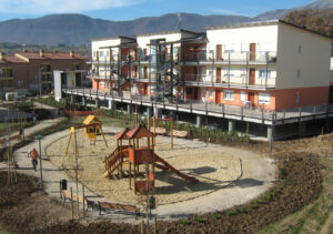Il progetto riguarda la realizzazione di edifici residenziali al di sopra di piastre sismiche nel Comune di L’Aquila in seguito al terremoto avvenuto il 6 aprile 2009. L’intervento si suddivide in 4 lotti, composti da 22 fabbricati pronti ad ospitare 536 alloggi.